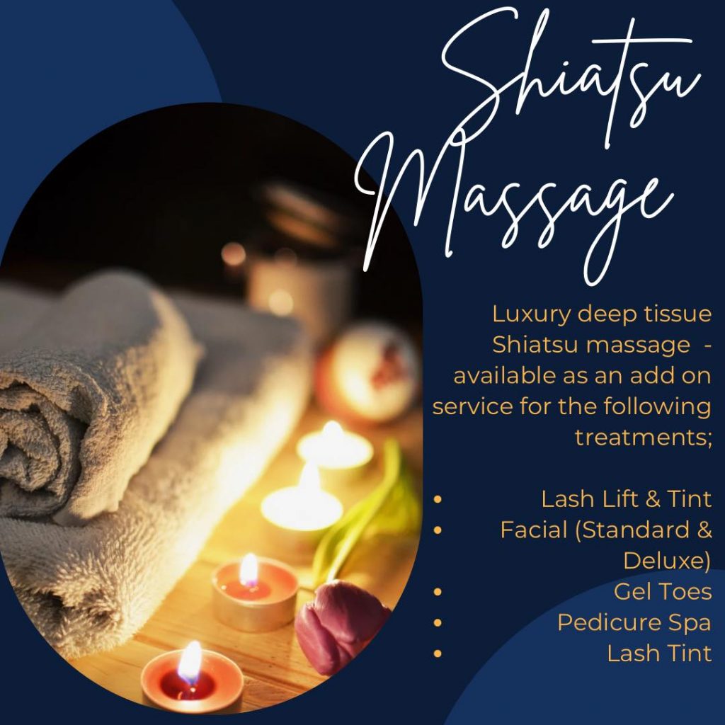 I’ve recently invested in a brand new service enhancement which provides a SHIATSU MASSAGE on your entire back whilst I carry out your booked treatment.